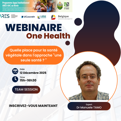 Le premier webinaire se tiendra le jeudi 10 Avril 2025, via zoom L’objectif est de favoriser les échanges interdisciplinaires dans une dynamique collaborative, en lien avec l’approche "One Health" dans les domaines de l’alimentation, la nutrition et la santé. Thème : Zoonoses émergentes majeures en Afrique : Épidémiologie, avancées et défis de la recherche Date : Jeudi 10 Avril 2025 Heure : 15h-16h30 (GMT+1) Lieu : Zoom meeting Modération : Professeur Achigan-Dako Invité : Professeur FAROUGOU Souaibou, Inscription : s’inscrire avant le 08 avril 2025 pour recevoir le lien et participer |
